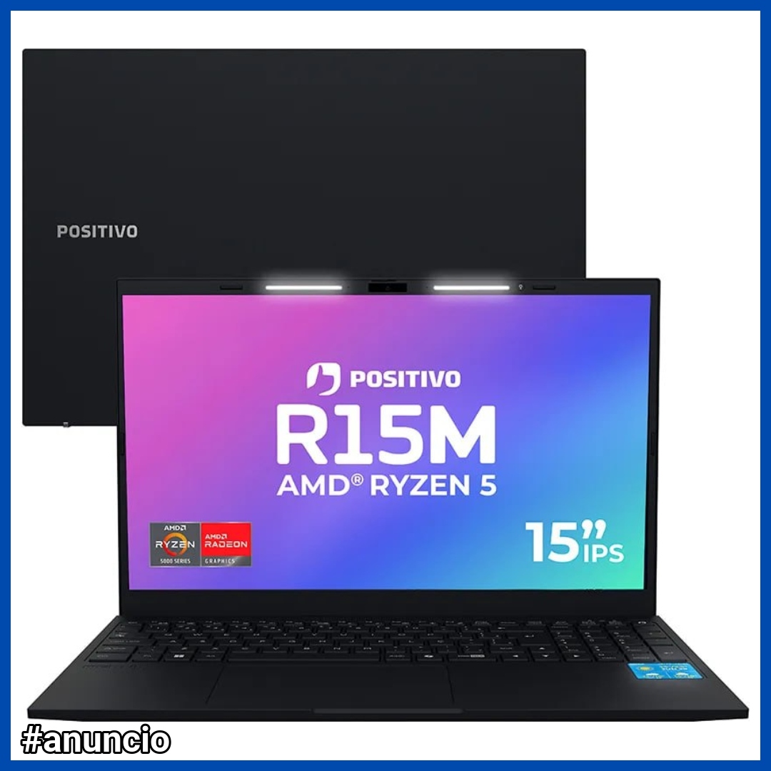Notebook Positivo Vision R15m Amd Ryzen 5-5625u Linux 8gb Ram 256gb Ssd Wi-fi 6 Tela 15 Full Hd Ips Antirreflexo - Permite Upgrade De Memória Ram E Ssd - Preto